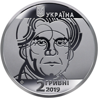 На аверсі монети розміщено: угорі на дзеркальному тлі – малий Державний Герб України, праворуч від якого – напис УКРАЇНА, на матовому тлі – стилізований портрет Казимира Малевича, унизу написи – 2 ГРИВНІ/2019; ліворуч під портретом логотип Банкнотно-монетного двору Національного банку України.