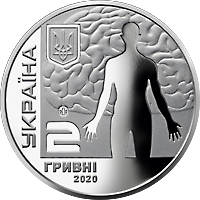 На аверсі монети розміщено: угорі ліворуч на рельєфному тлі – малий Державний Герб України, праворуч на тлі стилізованого рельєфного зображення мозку – дзеркальний абрис людини; унизу написи: 2/ ГРИВНІ/2020; ліворуч на дзеркальному тлі вертикальний напис – УКРАЇНА; логотип Банкнотно-монетного двору Національного банку України (над номіналом).