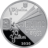 На аверсі монети розміщено: угорі малий Державний Герб України, під яким стилізований напис УКРАЇНА; на дзеркальному тлі композицію, що символізує діяльність літописця: каламар (чорнильниця), з якого розкривається аркуш паперу зі стилізованими написами: ЛІТОПИС/ САМІЙЛА/ ВЕЛИЧКА/ 1720; унизу: номінал монети 10/ГРИВЕНЬ та рік карбування монети – 2020.