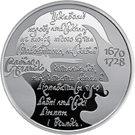 На реверсі монети на матовому тлі зображено дзеркальний абрис козацького профілю (образ Самійла Величка), на тлі якого козацьким скорописом відтворено фрагмент Передмови з Літопису Величка: ЦІКАВОМУ/ НОРОВУ ЛЮДСЬКОМУ/ НЕ МОЖЕ НІЧОГО БУТИ/ СПОДОБНІШОГО, ЛАСКАВИЙ/ ЧИТАЛЬНИКУ,/ ЯК ЧИТАТИ КНИГИ Й/ ДІЗНАВАТИСЯ ПРО/ ДАВНІ ЛЮДСЬКІ/ ДІЯННЯ/ І ВЧИНКИ. та написи: САМІЙЛО/ ВЕЛИЧКО (ліворуч на тлі пера), роки життя літописця 1670/1728 (праворуч від абрису).