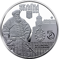 На аверсі монети розміщено: угорі напис УКРАЇНА, під яким – малий Державний Герб України та праворуч рік карбування монети – 2020; ліворуч на дзеркальному тлі зображено Костянтина Острозького, праворуч від якого – герб Острозьких та номінал монети – 5 ? на тлі стилізованого Дубенського замку; унизу праворуч на тлі стилізованих хвиль напис – КОСТЯНТИН/ ОСТРОЗЬКИЙ; логотип Банкнотно-монетного двору Національного банку України (праворуч).