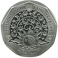На аверсі монети розміщено: угорі малий Державний Герб України, написи: угорі півколом - НАЦІОНАЛЬНИЙ БАНК УКРАЇНИ, унизу - номінал ДВІ ГРИВНІ та стилізовану композицію - на тлі зіркового неба зображення знаків зодіаку, під якими на місяці солодко спить дитина; рік карбування монети 2014 та логотип Монетного двору Національного банку України (праворуч), позначення металу, проби та маси Ag 925/7,78 (ліворуч).