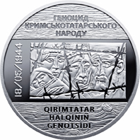 Присвячена пам’яті жертв геноциду кримськотатарського народу. 18 травня 1944 року радянський режим розпочав депортацію кримських татар з історичної Батьківщини – Криму. Їх примусове виселення, обмеження засобів до існування призвело до загибелі близько половини відселених. Національний банк України уводить в обіг пам`ятну монету за участю Державної служби України з питань Автономної Республіки Крим та міста Севастополя. Монету виготовлено з використанням технології патинування.
