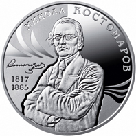 На реверсі монети зображено портрет Миколи Костомарова; ліворуч від нього його факсиміле та роки життя: 1817/1885; угорі півколом напис - МИКОЛА КОСТОМАРОВ.