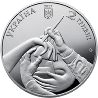 На аверсі монети розміщено: угорі малий Державний Герб України, над яким - рік карбування монети 2017; півколом написи: УКРАЇНА (ліворуч) та номінал 2 гривні (праворуч), під яким логотип Банкнотно-монетного двору Національного банку України; на дзеркальному тлі - стилізовану композицію: руки митця, який моделює скульптуру.
